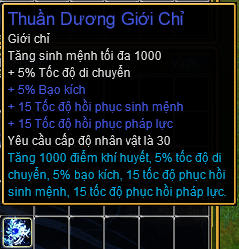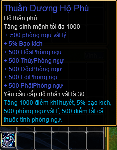 Mở Thuần Dương Bảo Bao sẽ ngẫu nhiên nhận được: Thuần Dương Giới Chỉ, Thuần Dương Hộ Phù, Tiểu Thất Sắc Thiên Lam 10%, Tiểu Thất Sắc Huyết Kim 20%.