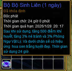 Phần Thưởng: Tiểu Phúc Bao (30 ngày), Bộ Bộ Sinh Liên (1 ngày), Thất Tinh Thái Tinh (Khóa Định).