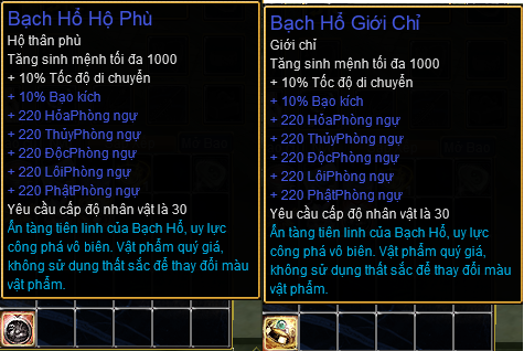 Cơ hội nhận được vật phẩm cực ngầu như Bạch Hổ Giới Chỉ, Bạch Hổ Hộ Phù, Tiểu Thất Sắc Thiên Lam Bảo Thạch (20%), Kỵ thú Hổ Hổ Sinh Phong (40%) ... cùng nhiều vật phẩm có giá trị khác chỉ với 50 mCash.