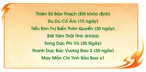 - Trường hợp nếu nhận được vật phẩm Kim Tự Chiêu Bài hãy liên hệ Admin FB để nhận lấy 01 trang bị hoặc 01 vũ khí Hoàng Kim có cấp độ 40 tự chọn (option ngẫu nhiên) và không khóa.