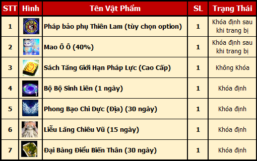 - Các vật phẩm thưởng buff và cánh từ sự kiện sẽ có thời hạn sử dụng trong 90 ngày.