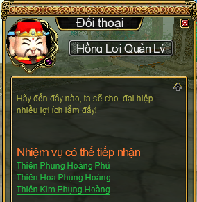 Sau khi thu thập được các vật phẩm yêu cầu thì quý đạo hữu có thể tìm đến NPC Hồng Lợi Quản Lý để đổi lấy các vật phẩm nhiệm vụ và đổi lấy kỵ thú Phụng Hoàng Niết Bàn.