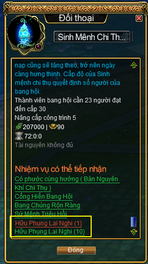 Tại NPC này chúng ta sẽ thấy 2 nhiệm vụ mới: