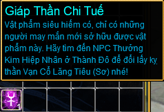 - Giáp Thần Chi Tuế: chỉ có thể nhận được từ Giáp Thần Lễ Bao.