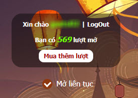 Để bắt đầu tham gia sự kiện, quý Đạo hữu click vào vòng quay để bắt đầu tham gia hoặc cũng có thể check vào ô "Mở liên tục" để tự động mở số lượng lớn.