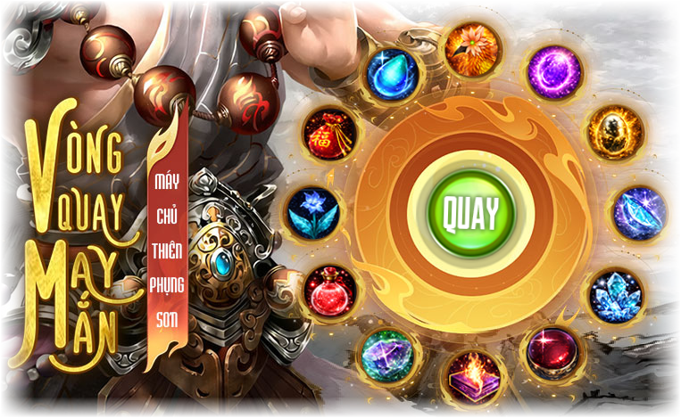 Sự kiện Vòng Quay Thiên Phụng Sơn sẽ mang đến cho Quý đạo hữu các món quà đầy hấp dẫn và cực HOT. Chỉ cần quý đạo hữu chuyển mCash vào máy chủ Thiên Phụng Sơn, đạo hữu sẽ có cơ hội thắng những phần quà đầy hấp dẫn.